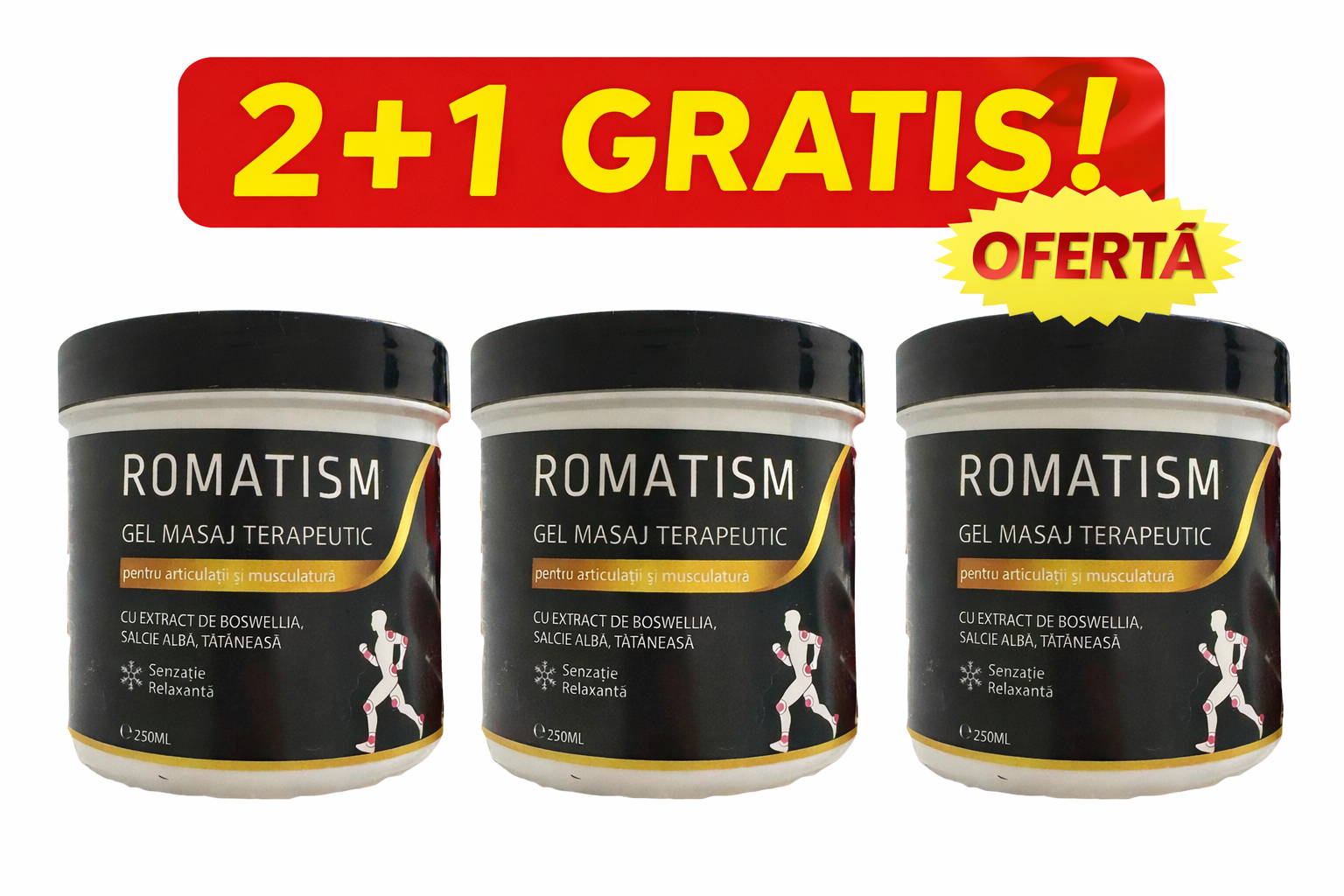 Gelul Romatism poate fii folosit în majoritatea zonelor ( genunchi, talpa piciorului,șold, chiar și la încheieturi ).